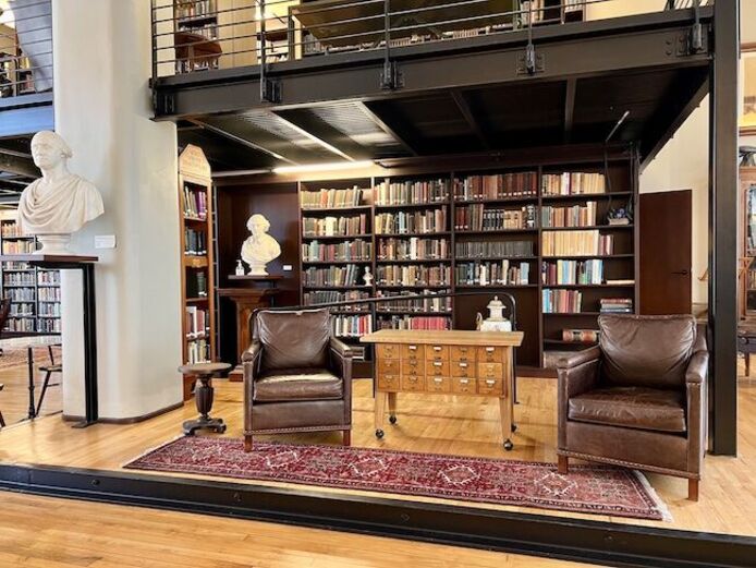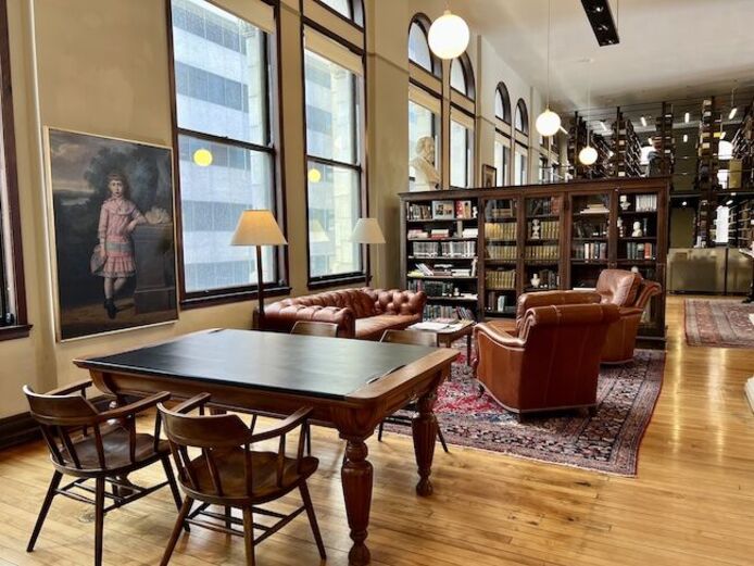 A feast for the senses with creaking floorboards, oversized arched windows allowing light to beautifully embrace the space, and comfortable reading spaces with inviting leather chairs encourages all things reading, writing, and thinking. The extensive book collection amongst the glass-floored stacks beckons to be explored. With decades of history, and a camaraderie for the love of learning the Mercantile Library welcomes visitors to embrace their inner bookworm.